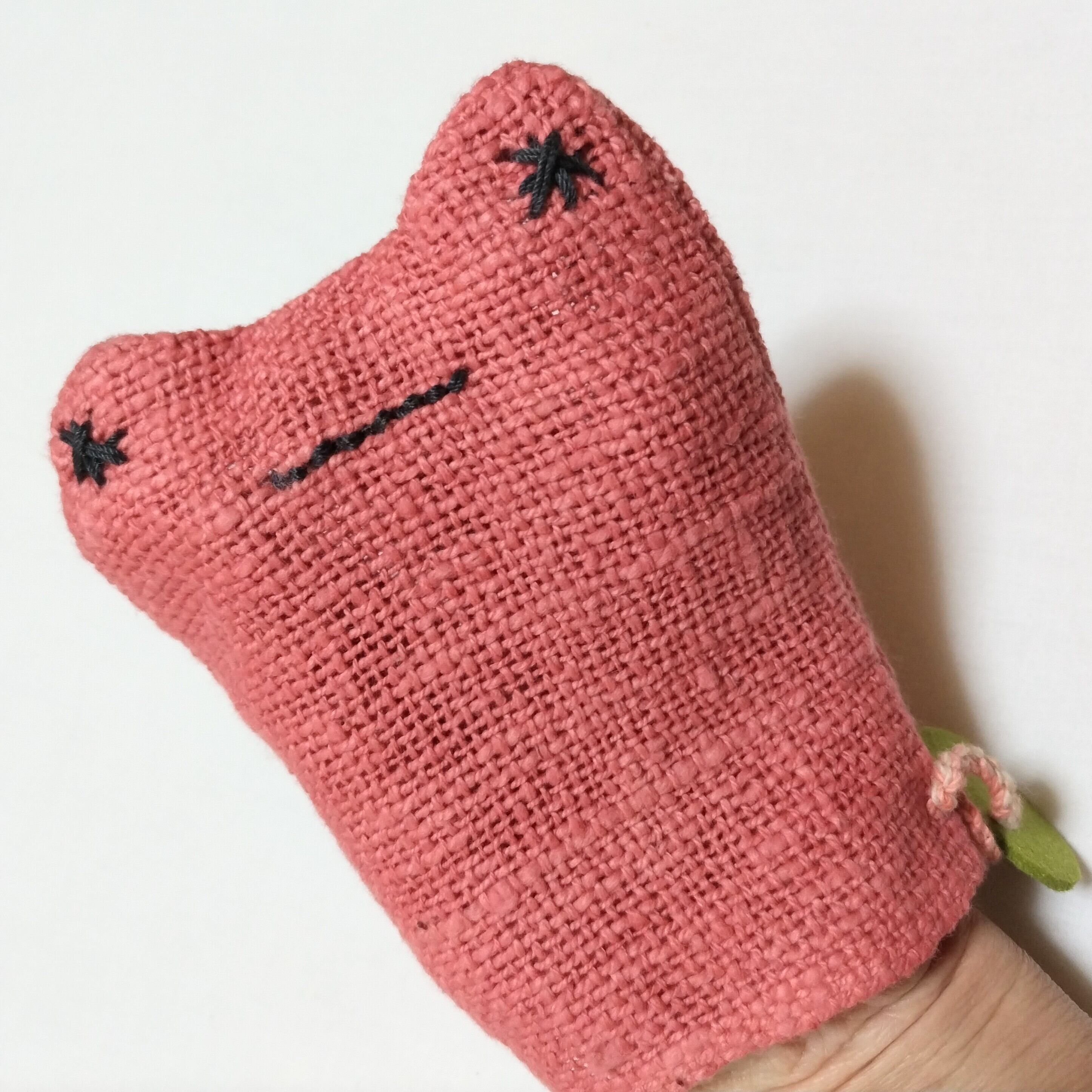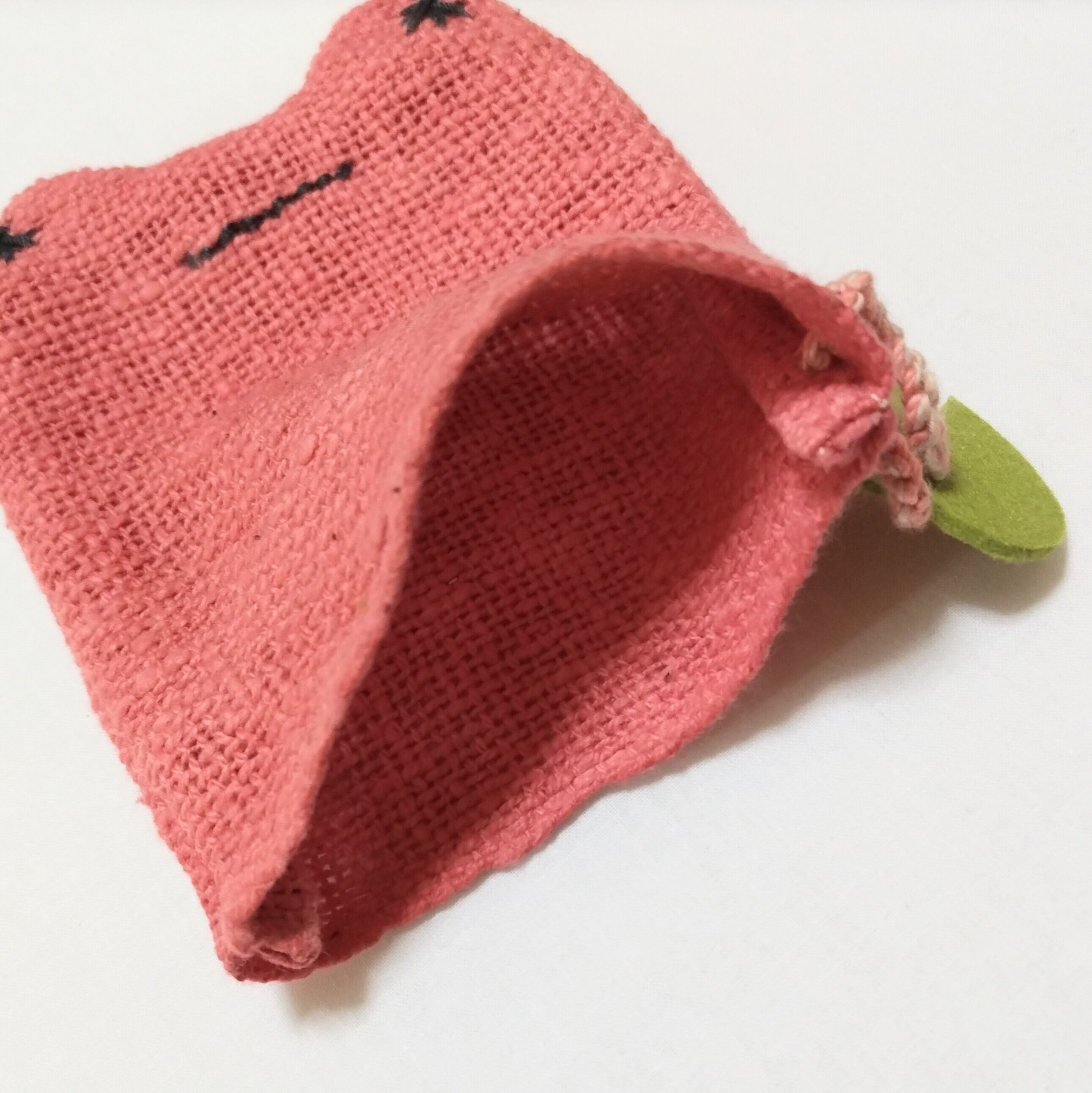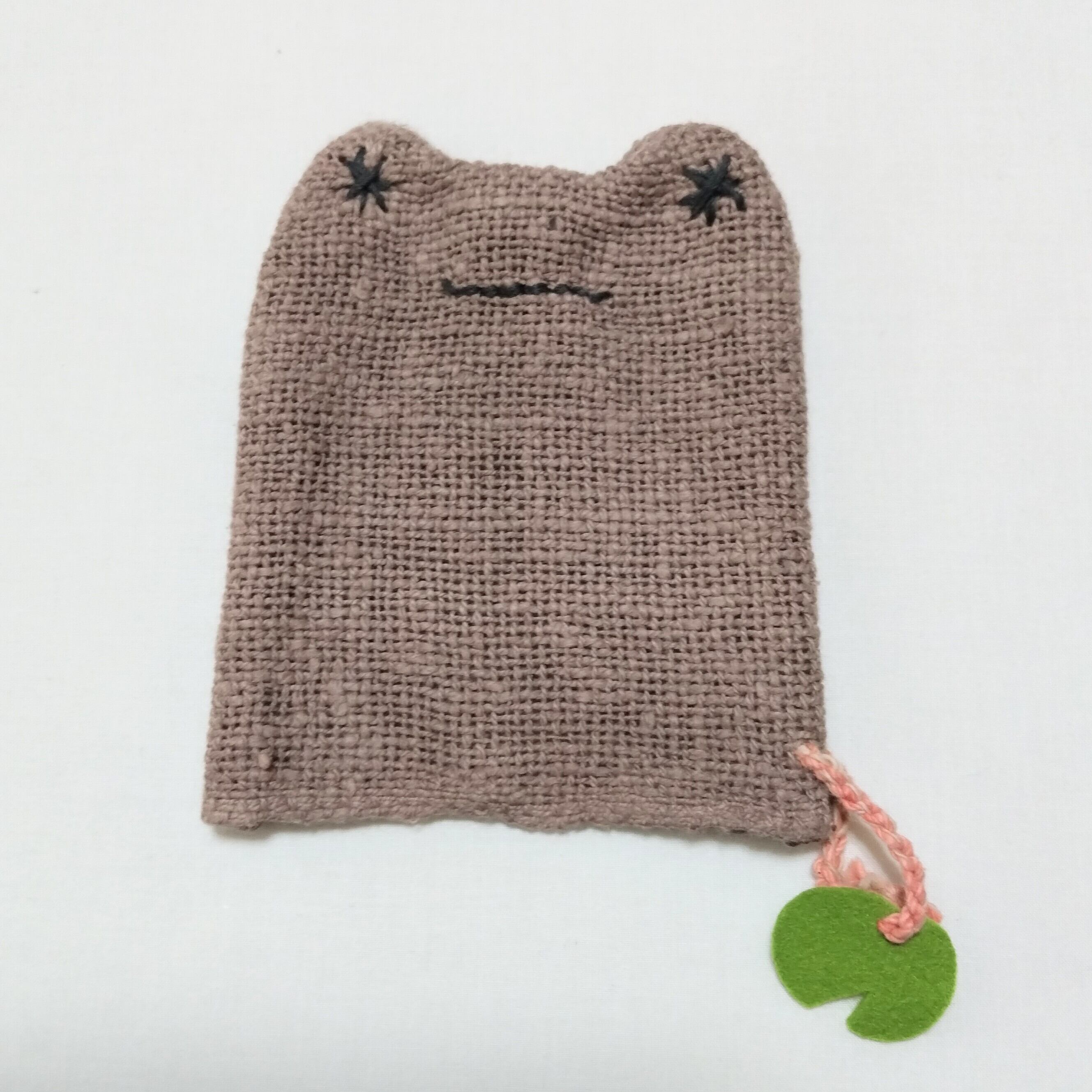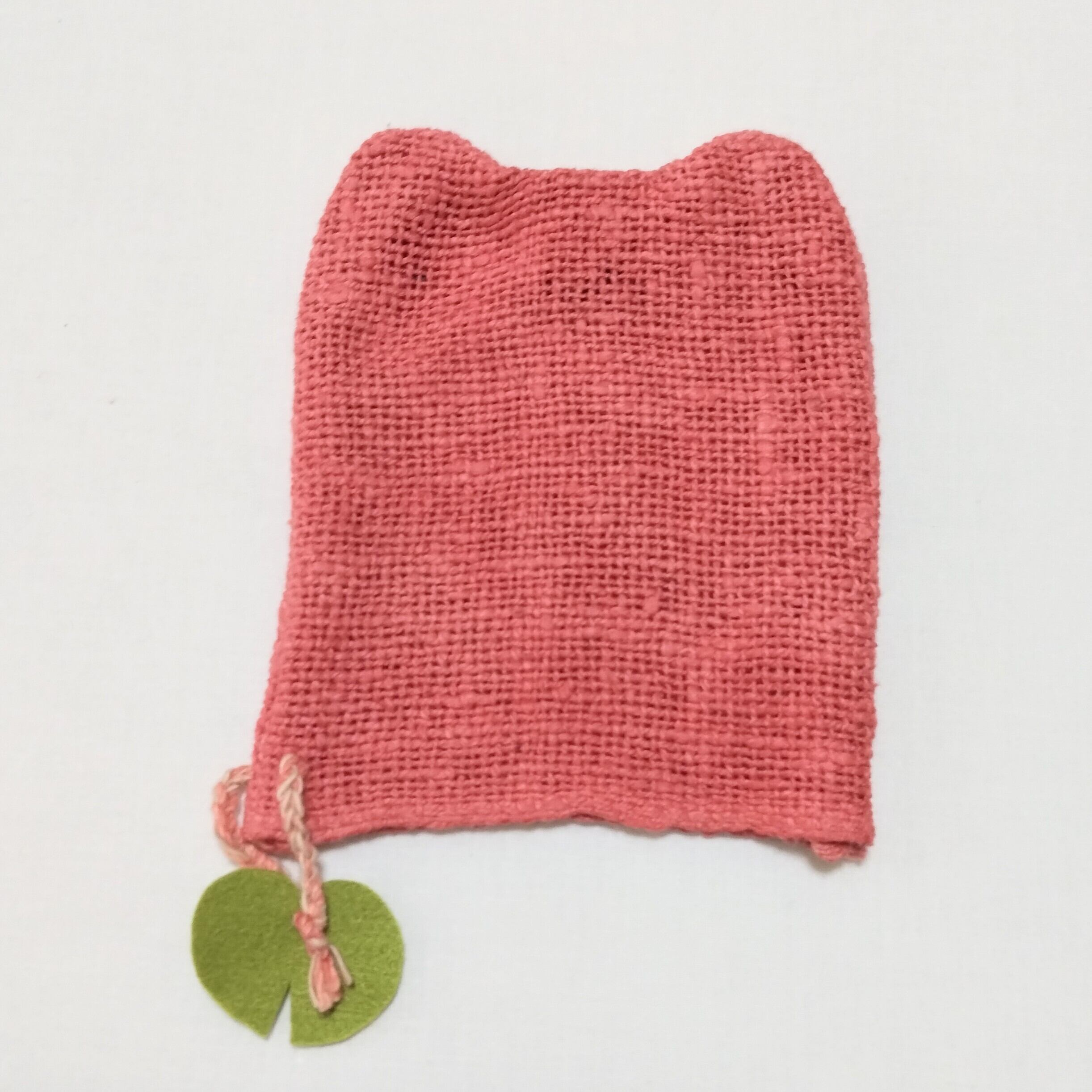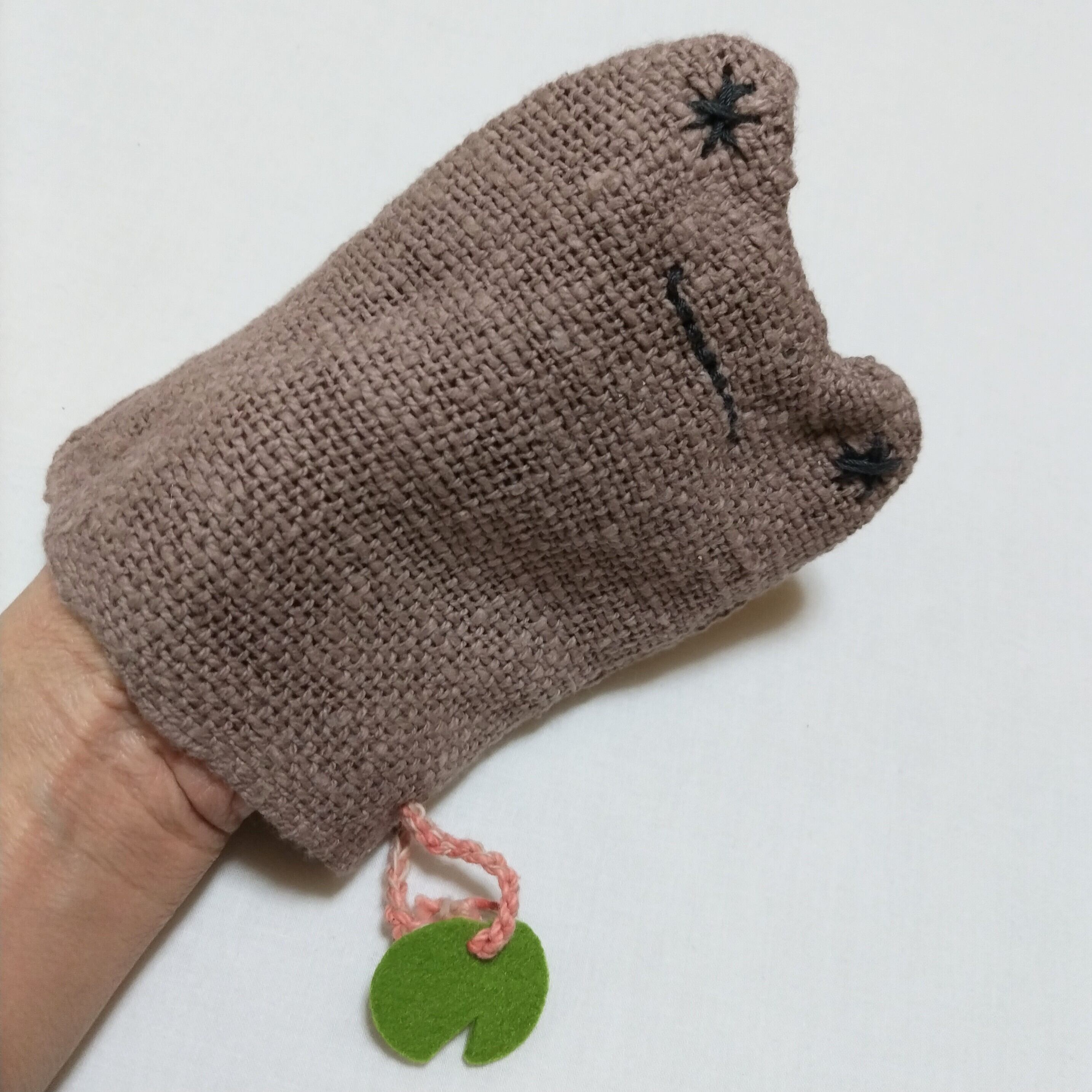 草木染めや茶綿の自然栽培綿で編んだ吊るせるループ付き。