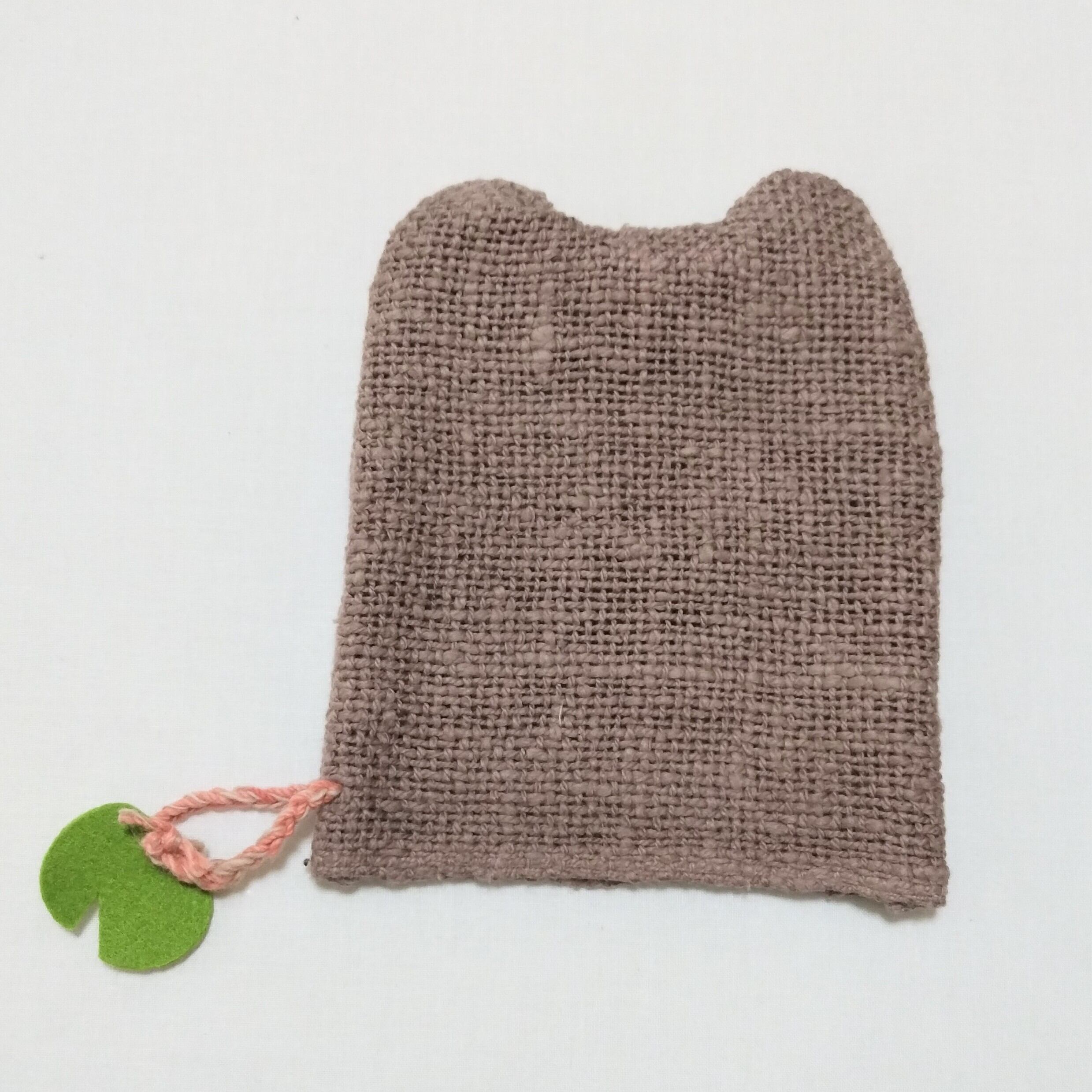 アクリルたわしのように、洗剤無しで汚れが落ちますが、このゲコたわしは、がら紡綿100%を草木染めしていますので、肌にも環境にも優しい洗浄アイテムです。